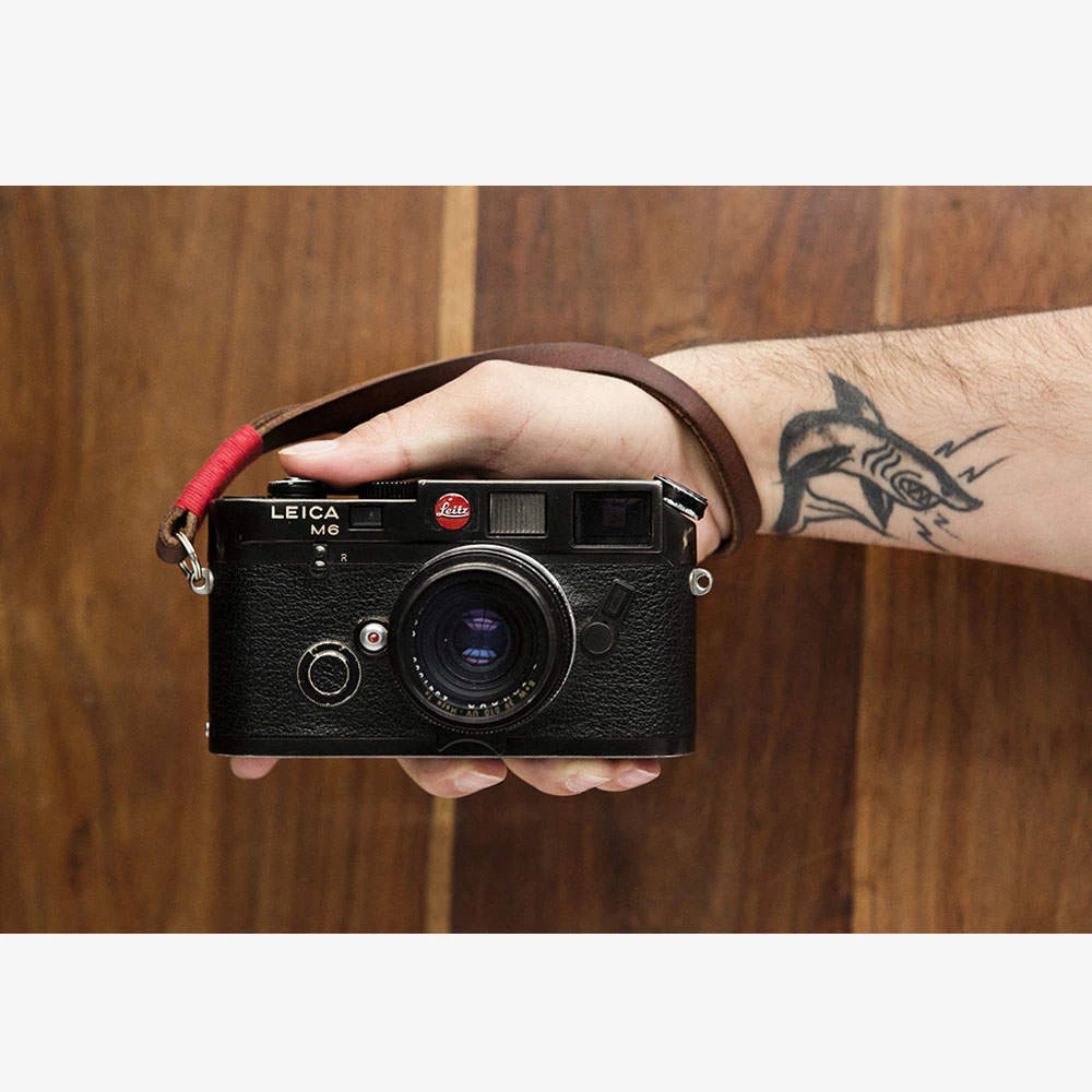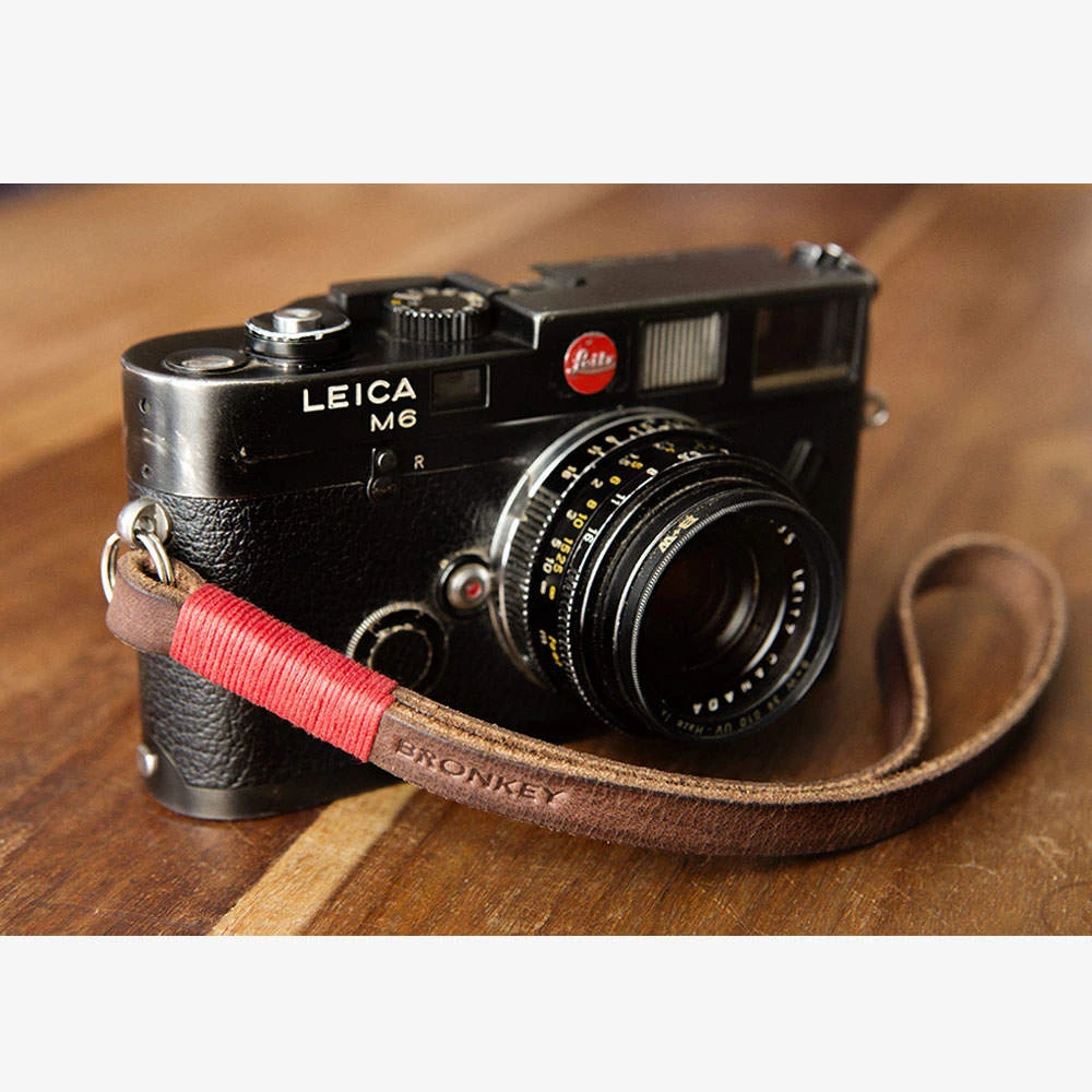 This Tokyo #202 leather camera wrist strap in brown and red from Bronkey allows you to stylishly secure a camera to your wrist as you keep it in hand. snug fit when the camera is attached using the wrist strap’s durable steel key ring. The key ring connects to cameras that feature at least one eyelet for attaching a camera strap.