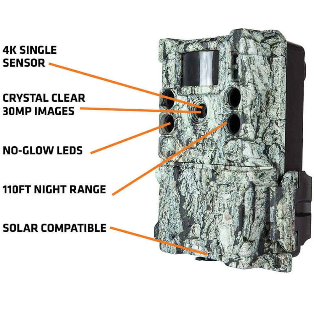 Featuring a fast 0.2-second trigger speed and 110′ infrared flash, the Core S-4K produces motion-activated 30MP photos and 4K 30 fps video. Choose to have the camera operate during the day, at night, or both, and take 1-6 photos per trigger.