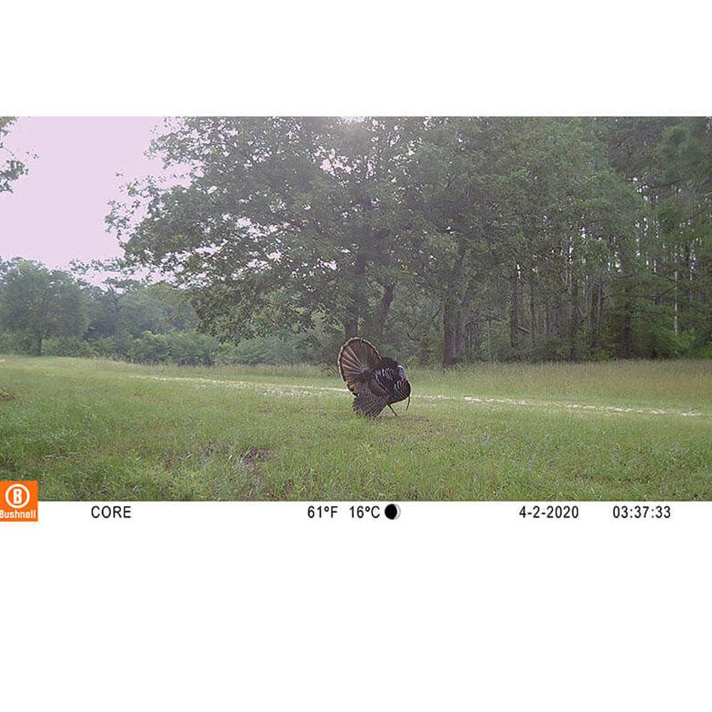 With this Bushnell Core S-4k 30mp No Glow Trail Camera, the date, time, temperature, moon phase, and GPS coordinates are stamped on the photos, along with a user-set camera name. Video clips can be up to 60 seconds in length.