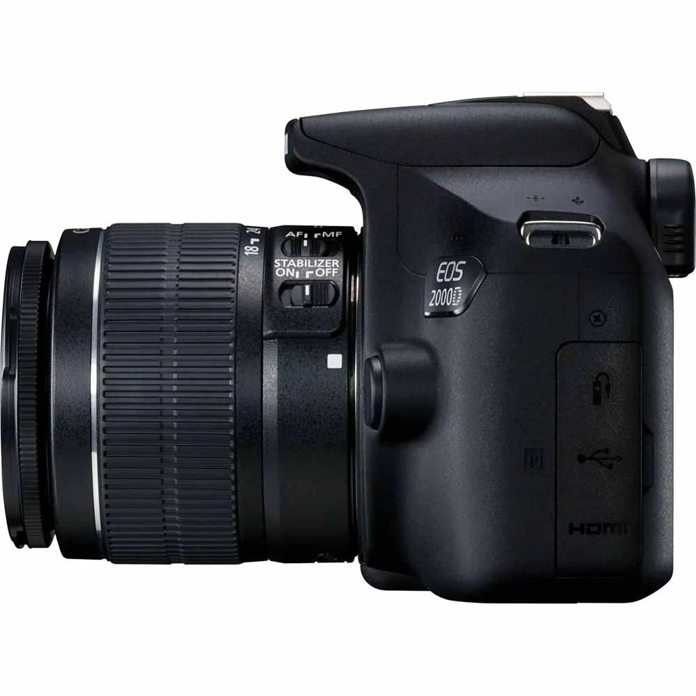 The Canon EOS 2000D camera kit is a beginner-friendly digital SLR featuring a large 24.1-megapixel APS-C sensor and comes complete with a Canon 18-55mm IS Lens. Features full HD movie recording and built-in Wi-Fi with NFC connectivity. The 24.1 megapixels has up to 19x more surface area than many smartphones to capture stunning background blur. Easily capture extremely detailed professional-looking images and cinematic Full HD movies in bad lighting situations.