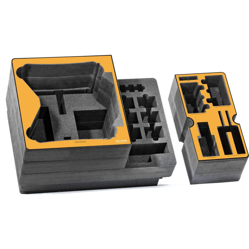 The custom cut foam can store: DJI Matrice 600 Pro (Batteries TB47S Attached), Hex Charger, Remote Controller, Landing Gear, Cable, Landing Gear.