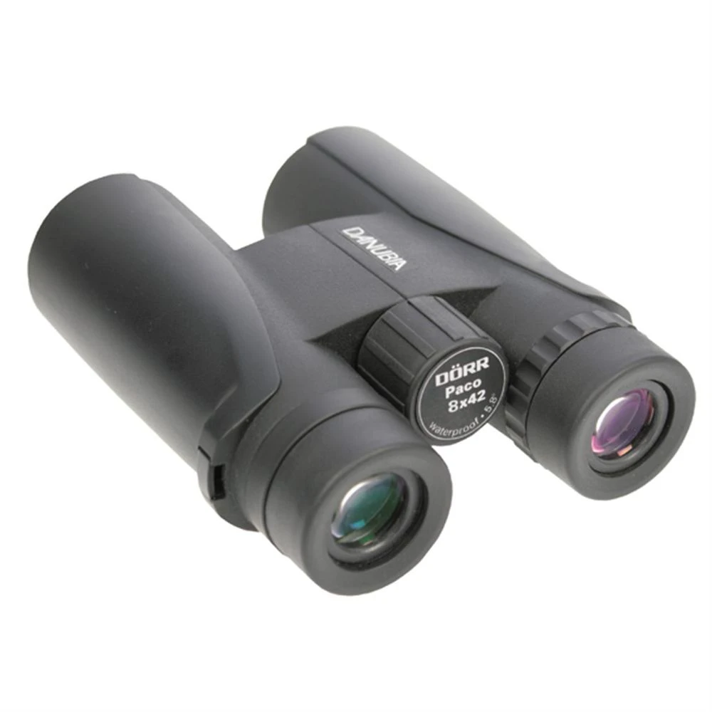 The Paco 8×42 Binoculars are a standard size of binocular and very comfortable to hold. Robust and rainproof they are great for outdoor use and the rubber armoured cover helps to keep them protected, as well as making them secure to handle. If you wear glasses, the eyecups can be twisted down for much more viewing comfort and if you don’t need to wear spectacles, then the twist caps can be left up. A dioptre adjustment is controlled through the right hand side eyepiece and once set, can remain in position ensuring that the Paco binoculars are set up exactly for your personal eyesight. The optics are multi-coated to help with light gathering capabilities and for repelling dust and dirt. It also helps to prevent fringing, which is the soft haze that can appear around the edge of subjects.