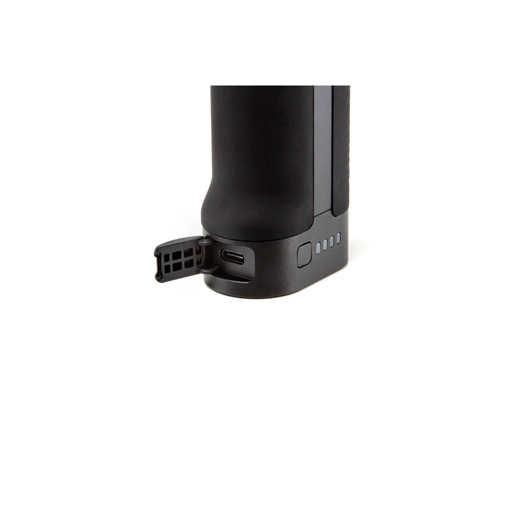 The DJI Ronin BG30 Grip powers DJI RS 2 for up to 12 hours. It supports 24W PD and QC2.0 quick charging, and can be charged from 0-80% within an hour and fully charged within 1.5 hours. A charging port allows the BG30 Grip to charge independently from DJI RS 2. A cartridge design and the grip lever and safety button on the gimbal provide secure mounting and quick releasing.