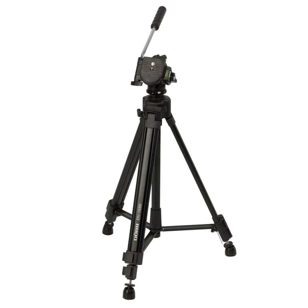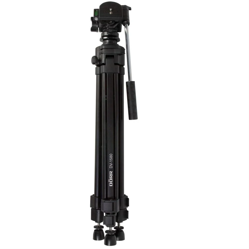 The Dorr DV-1580 Photo & Video Tripod inc 2 Way Head is ideal for use with DSLR cameras and compact camcorders; the sturdy aluminium tripod allows correct pan shots and smooth landscape shootings. Features a 2-Way fluid pan head with a long handle for smooth operation and a quick release plate with 1/4″ camera mount and a centre column with retractable crank and locking screw. The DV-1580 has a minimum and maximum height of 65-158cm and a closed length of 70cm with a max load of 4kg.