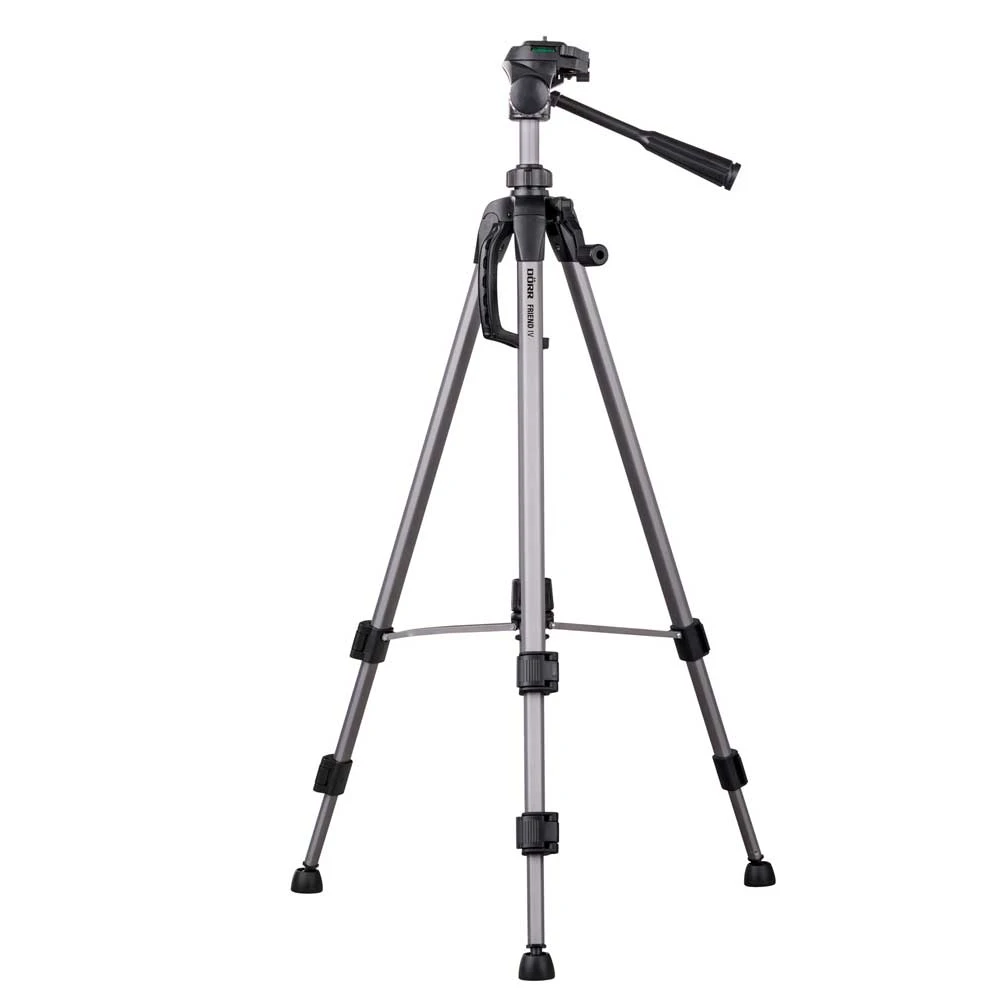 The Friend IV is an Aluminium Tripod features 3 sections with 2 extensions and one-touch leg logs. A centre column with crank and handle has a hook on the bottom to attach additional weights to hold down the tripod. Supplied with a 3-way panhead for hoizontal and vertical shots with a 1/4″ quick release plate. Includes a case for ease of transport and storage.