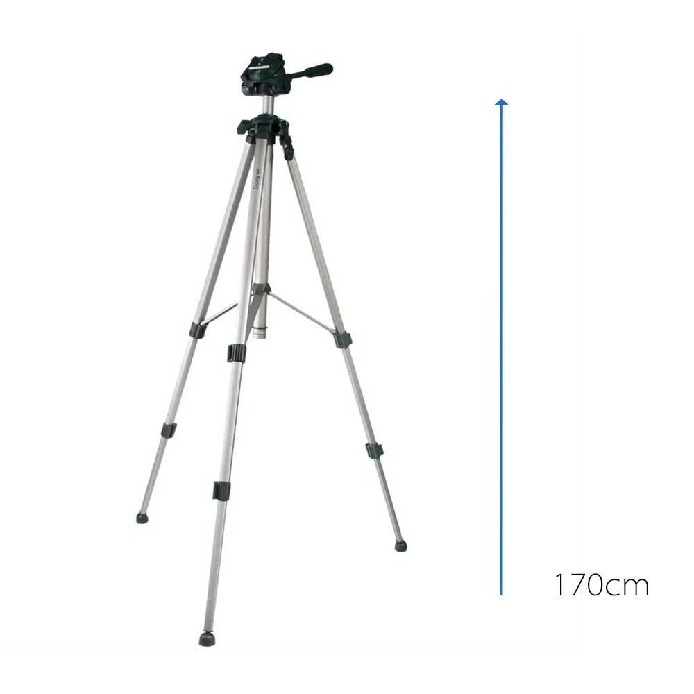 The Dorr King Tripod has 3 sections, one-touch leg locks and rubber tips for extra stability. The King also features a height adjustment crank and comes with a 3 Way Panhead with integrated spirit level. The quick release plate on this tripod has a 1/4″ camera mount for attaching a max load of up to 4kg. This tripod can reach a maximum of 170cm and for lower ground shots, the minimum height of this photo and video tripod is 61cm. A carry case for travelling and storage is included.