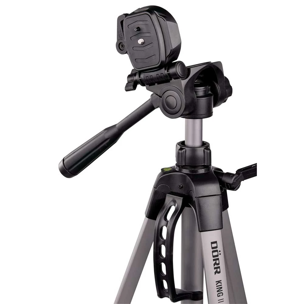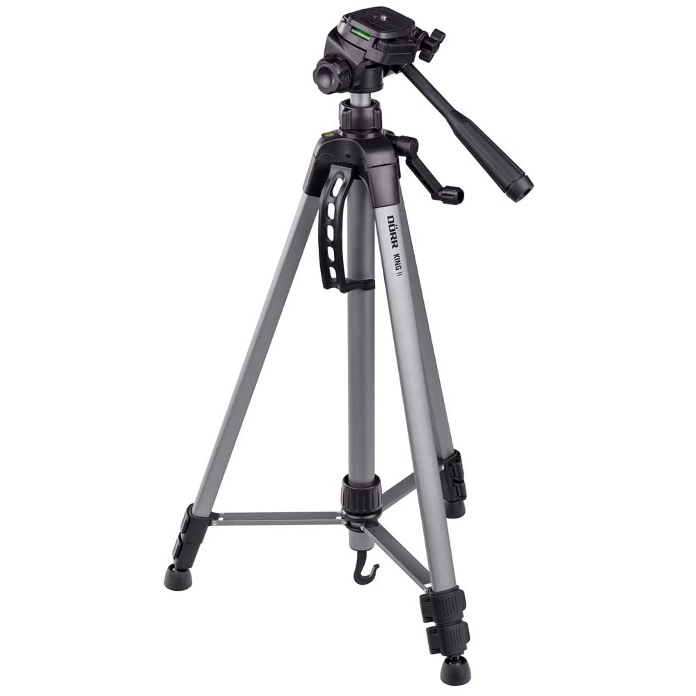 The King II Tripod is the version 2 of the original King from Dorr. This Aluminium Tripod features 3 sections with 2 extensions and one-touch leg logs. A centre column with crank and handle has a hook on the bottom to attach additional weights to hold down the tripod. Supplied with a 3-way panhead for hoizontal and vertical shots with a 1/4″ quick release plate. Includes a case for ease of transport and storage.