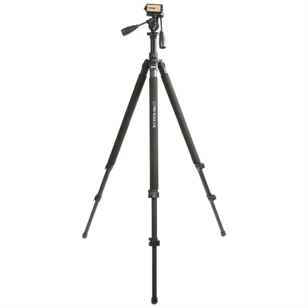The Pro Black tripods are a sturdy range of tripods which are really easy and quick to put up due to the one touch leg locks. The 3XL is the tallest of the range with a maximum height of 193cm with the centre column up. The tripod has a three tilt operation for macro shots and rubber grips for comfortable use even in the coldest of weather. The pan and tilt head provided with the tripod has a spirit level in it, so levels can be absolutely perfect and the maximum working load for the tripod is an impressive 5kg. Perfect for use with a DSLR camera or CSC, this tripod will give you shake free, pin sharp photographs.