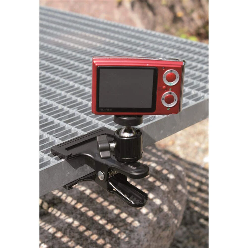 Dorr Table Clamp can be fixed to rods, branches, fences etc. Ideal for action videos taken when your compact camera (via a 1/4″ camera mount) is attached to your bike handlebar. This clamp also features a removeable ball head.
