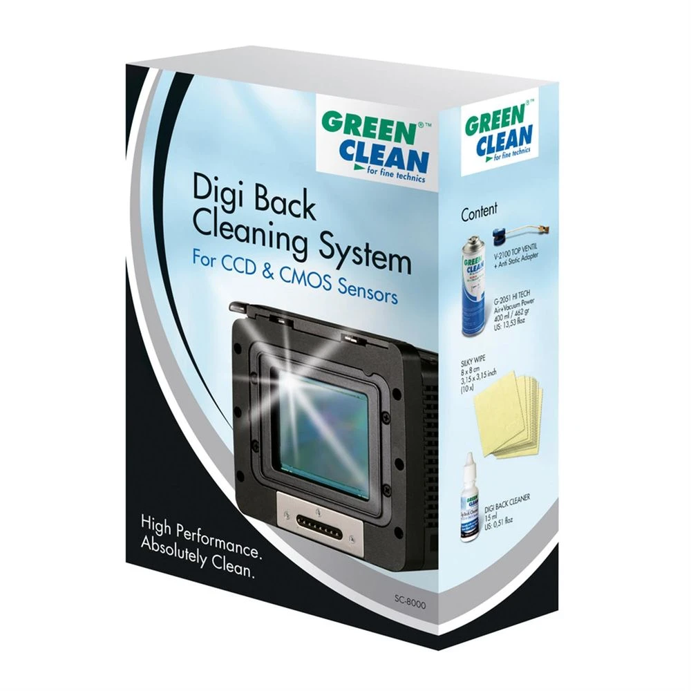 The Green Clean Digi Back Cleaning Kit includes 1x Air & Vacuum Power HiTech (G-2051), 1x Anti Static Top Valve (G-2100), 10x Silky Wipe Cleaning Cloths 8x8cm (T-1020) and 1x Cleaning Fluid Digital Capture Back Cleaning Liquid 15ml. This kit is ideal for the gentle cleaning of digital back sensors.