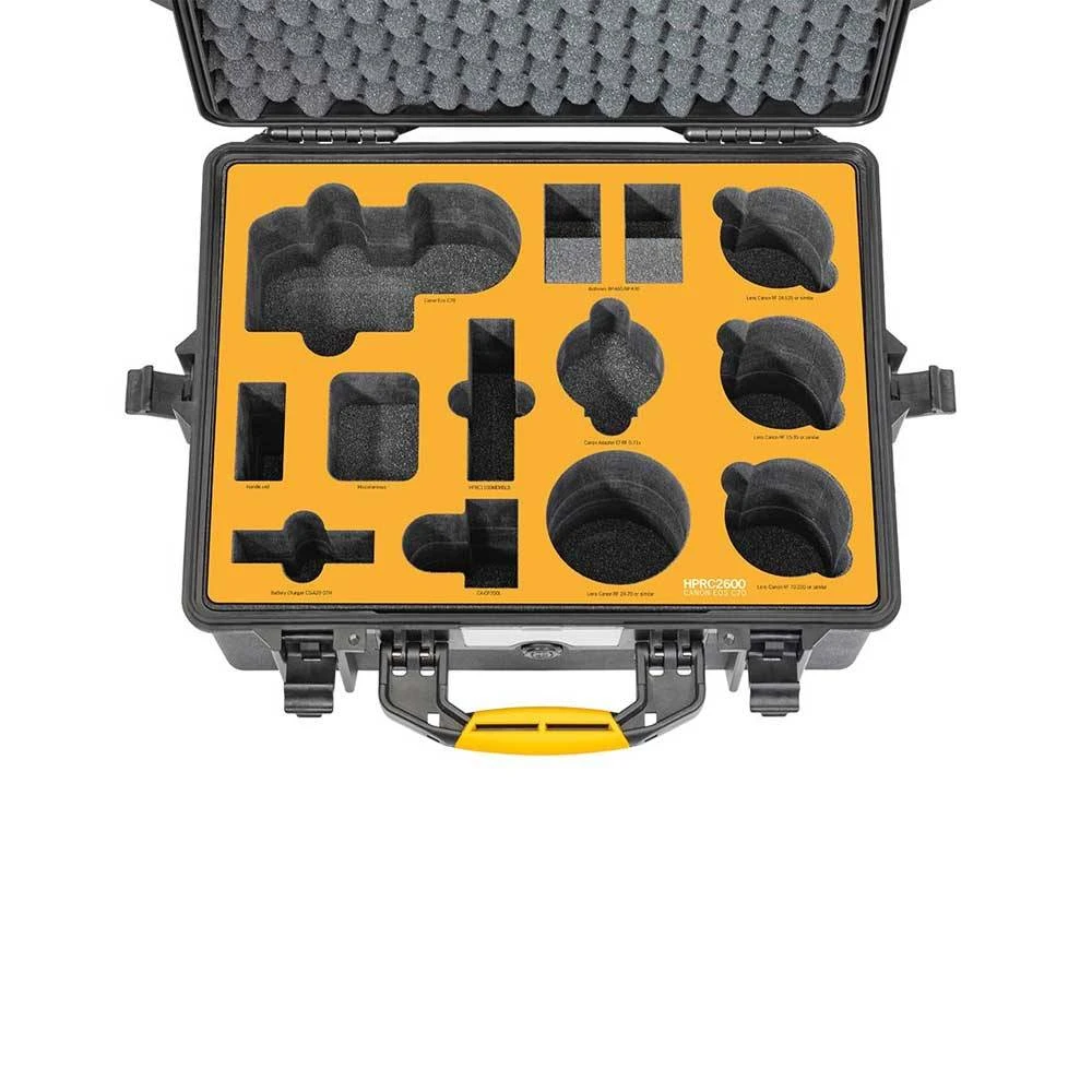 HPRC case based on the HPRC2600 designed to protect and carry the Canon Eos C70 and accessories.