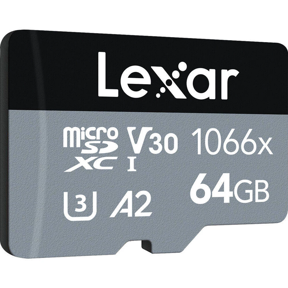 Designed for your action cameras, drones, or Android smartphone, the Lexar Professional 1066x microSD UHS-I Card SILVER Series lets you quickly capture and transfer high-quality photos, including Full-HD and 4K UHD video with speeds up to 160MB/s read, and up to 120MB/s write. The card is U3, V30 and A23,4 rated for high-speed performance. This card gives you the speed and storage you need to capture more adventures on the go.
