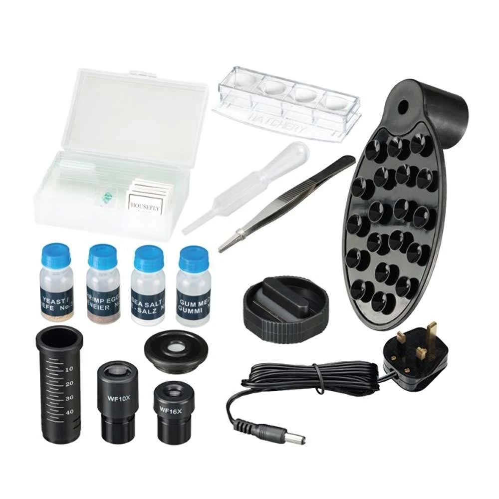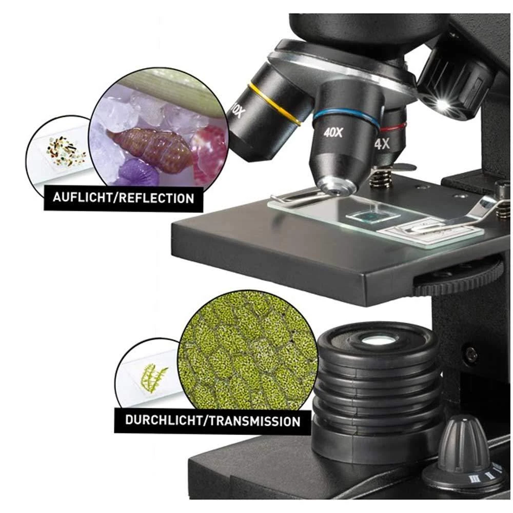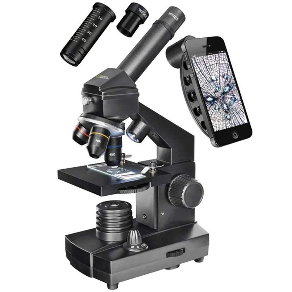 This National Geographic Microscope is the perfect device to get excellent access into the world of microscopy. Due to many exclusive accessories like a set of dissecting instruments or a seperate electronical eyepiece, you can expand your beginner´s model. Furthermore, a smartphone holder gives the possibilty to make pictures of your observations with your smartphone.