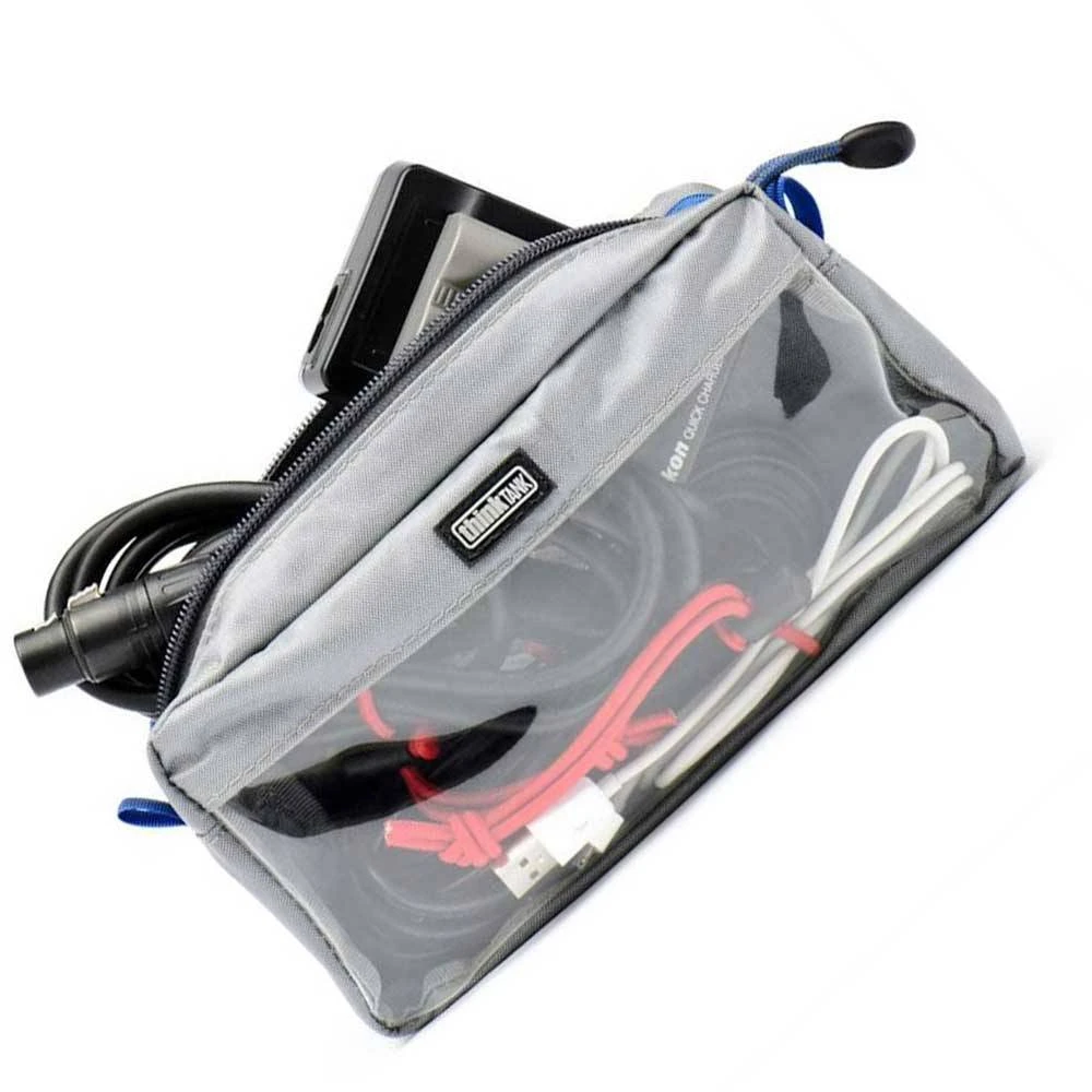 The T241 Think Tank Cable Management™ 10 V2.0 Organiser case is a small sized organizer pouch with a clear non PVC mesh. It can accommodate various photo accessories in the main compartment. It has a dedicated clear slot located on the front of the bag for business cards or other identification, a zippered front pocket, and a built-in carrying handle.