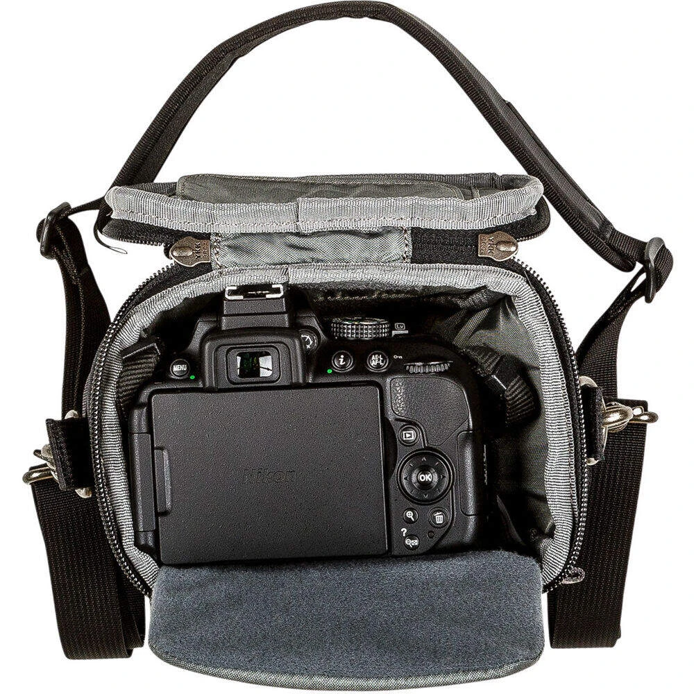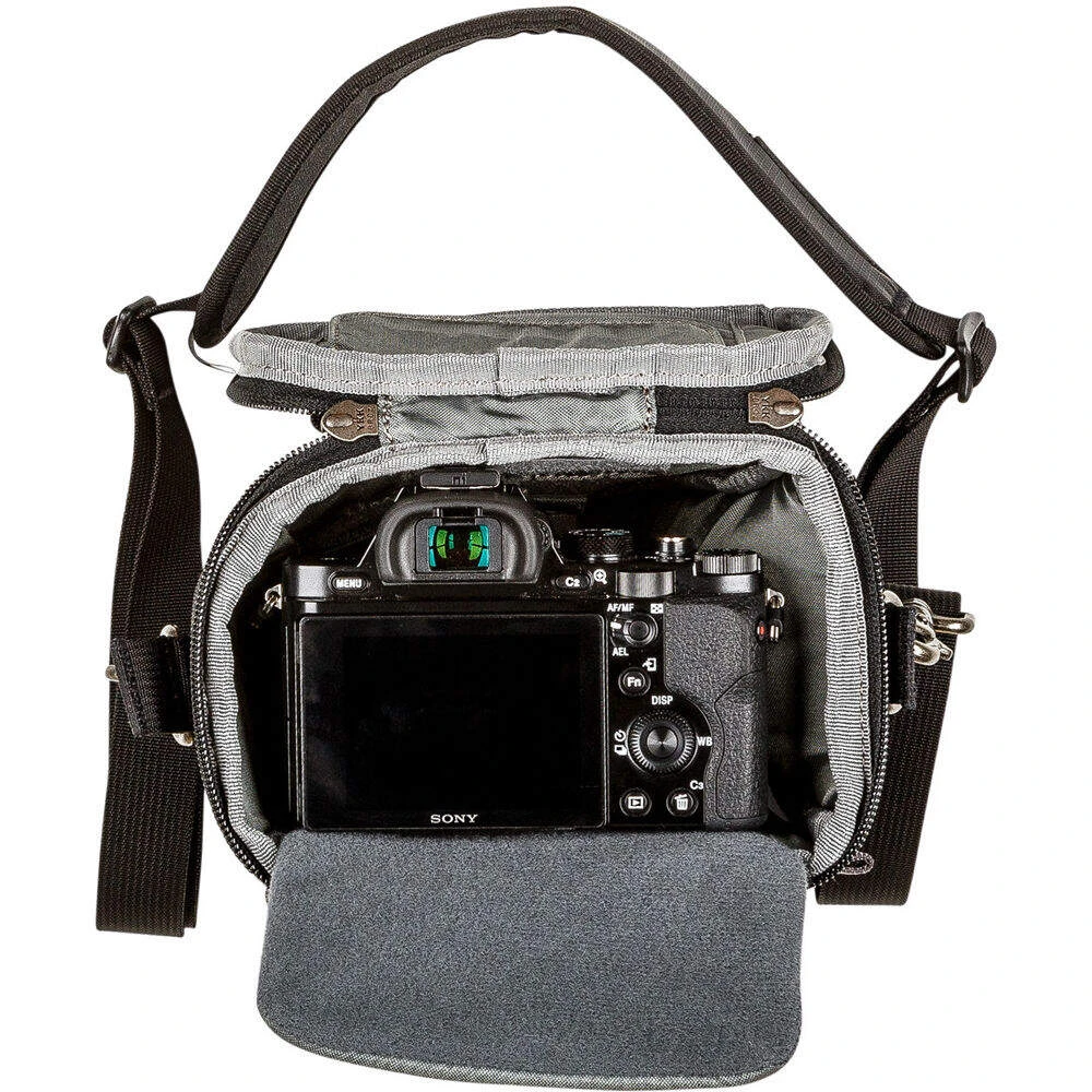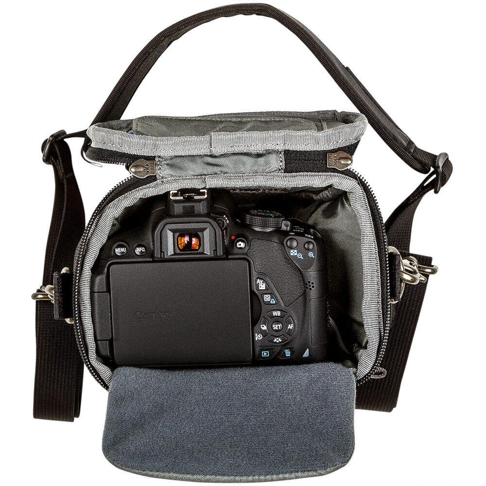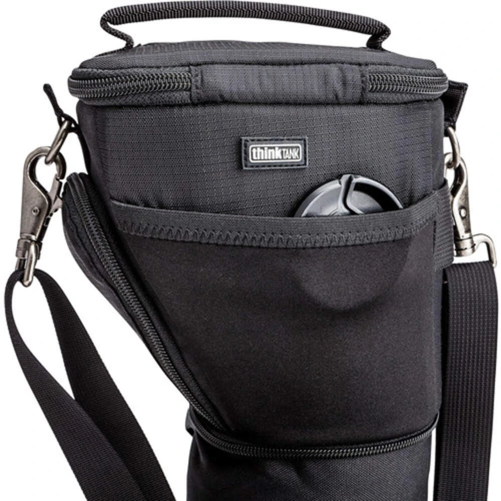 The Think Tank Digital Holster 10 V2.0 Expandable Shoulder Bag is an excellent, highly organised compact bag. Perfect for a Compact DSLR or a small camera body with kit or small prime lens attached. A quick, top opening zippered compartment provides quick and easy access to your equipment. The Digital Holster 10 V2.0 features the ‘Pop Down’ system, this increases the bags height for a lens hood or a telephoto lens. On the inner side of the top lip, there is a small accessory pocket for memory cards and lens clothes and a zippered side pocket is for larger accessories such as batteries and cables. This shoulder bag attaches to all Think Tank belts and bags with Modular Rails and also a side attachment rail so it can a small Modular or Skin component can be connected to the holster. Carry this bag using the top grab-handle or with the included shoulder strap or belt mount. Includes a seam-sealed rain cover to protect your gear in bad weather conditions.