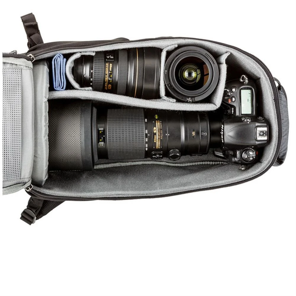 On days you dont want to carry a long lens, remove the specialized yoke-collar and support ring, the interior can be tottaly customized with the included dividers to carry a surprising amount of traditional gear. With the Yoke-collar and supporting ring removed you can carry a pro DSLR and 5-8 lenses.