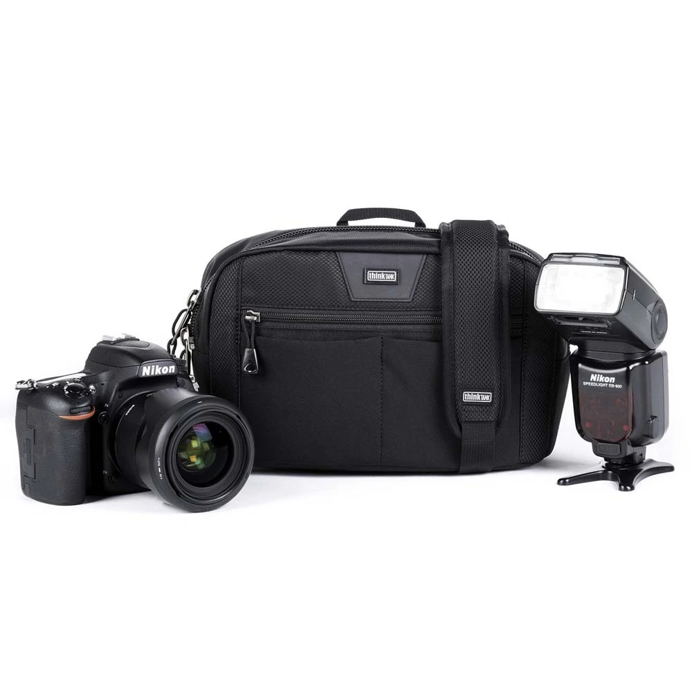 This belt pack/shoulder bag hybrid includes removable dividers and is a versatile lightweight solution for carrying a Mirrorless system. Features multiple ways to carry the bag, either as a shoulder bag or a belt mount. A front pocket organizer allows storage of small accessories and one handed zippers allow quick and easy access. Includes a seam sealed rain cover.