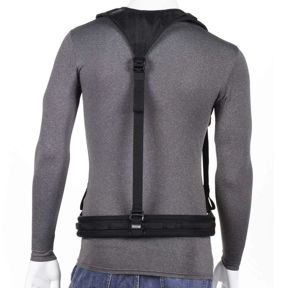 The Think Tank Pixel Racing Harness is a shoulder strap which provides vertical support to Think Tank belts and belt packs. Attaches to any Think Tank belt (not included) to distribute weight between your shoulders and waist. Features additional loops, D-Rings and stretch pockets and airmesh for comfort and breathability.