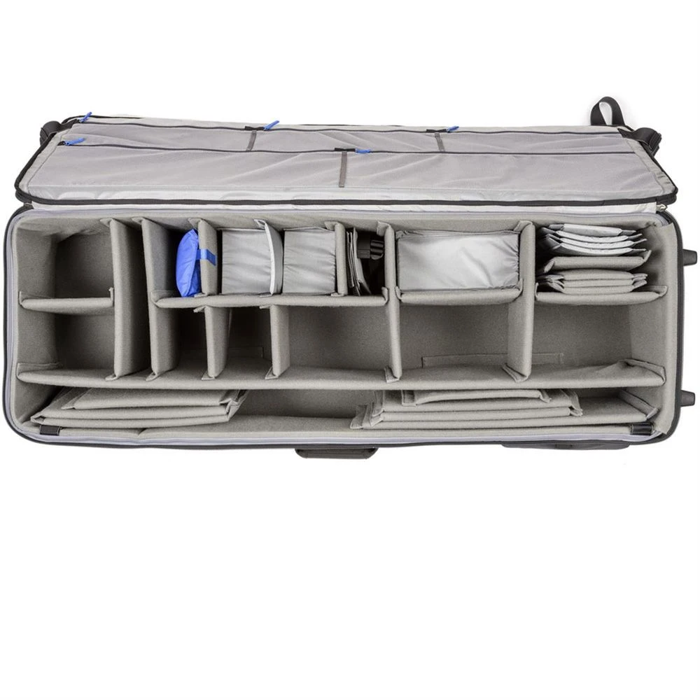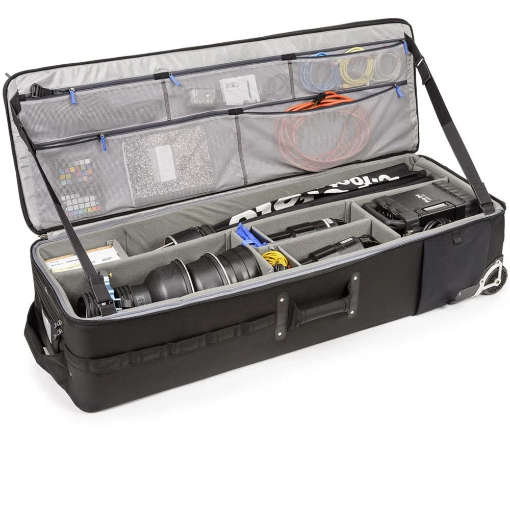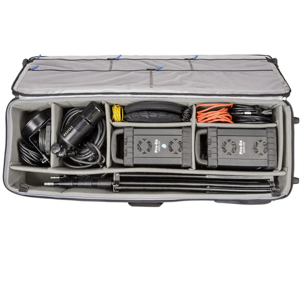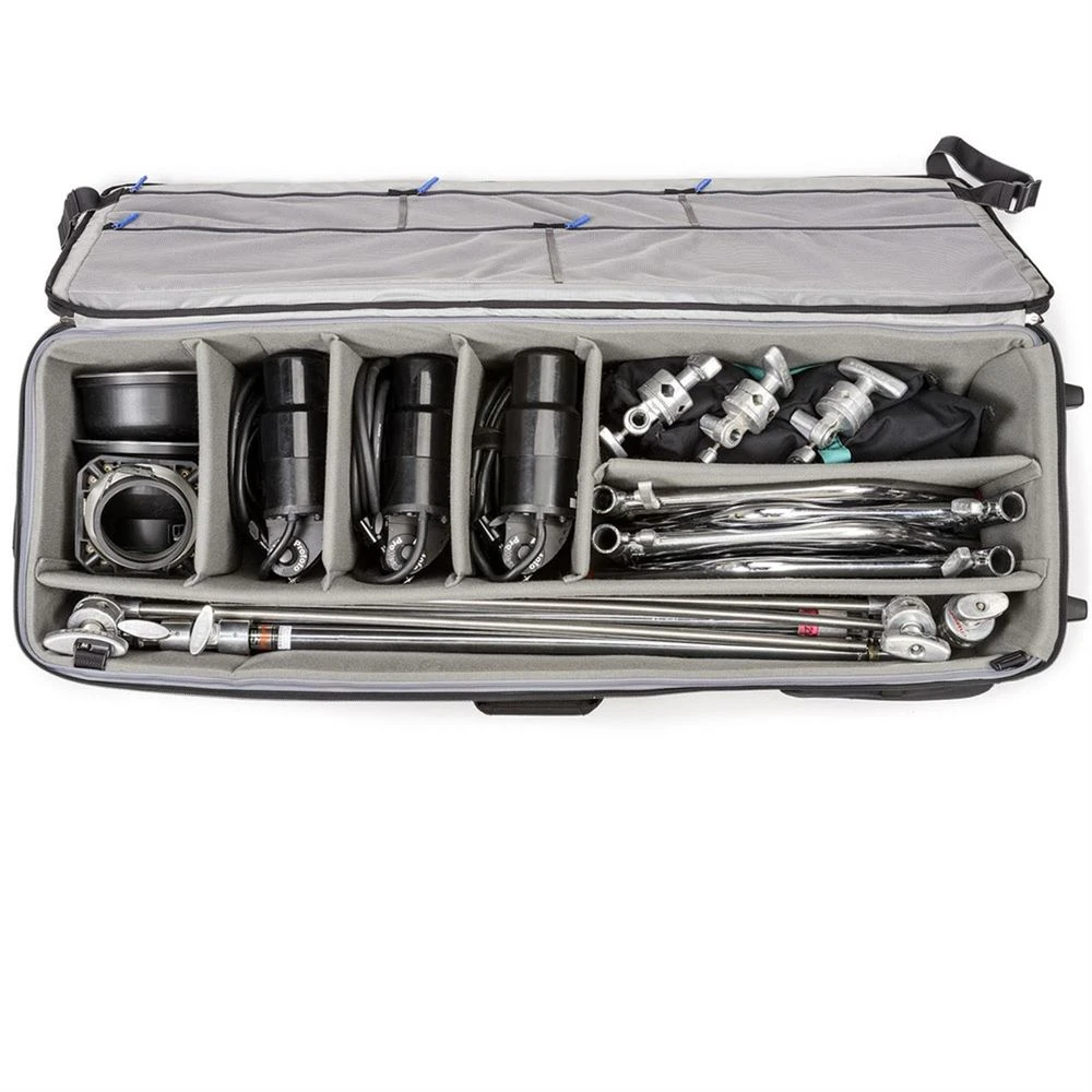 Think Tank Production Manager 50 is perfect for the photographer on the move, as it is a high-capacity rolling case, designed for professional gear. It is the most convenient way to safely transport and carry a large amount of lighting equipment, as the removeable dividers allow the equipment to be stored safely whilst being transported. The Manager 50 has been really well thought through and has lots of features that make life that much easier. With enough room for multiple flash heads, power packs, monoblocks, softboxes and light stands and strong trolly wheels which can be easily replaced if damaged, the case is easy to transport, in spite of its size. The case has attachment straps for fixing poles to the oputside of the bag, heavy duty aluminium side frame and ID plate for registering on the Think Tank website. The inside of the bag has a removable, no-scratch Velex divider system and features a spacious front pocket which holds reflectors, umbrellas, cables and much more. Other exciting features of this rolling case includes an integrated lock and cable, wide-set wheels which minimize tipping and adjustable lid straps to keep the manager open when in use. The Production Manager 50 has rear skid rails and custoem wheel housings which is great news for loading and unloading from vehicles. Includes a seam sealed rain cover.