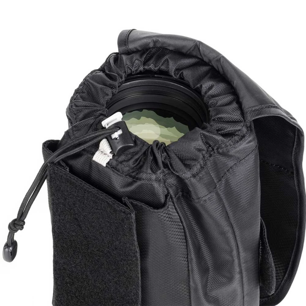 The Skin 75 Pop Down V3.0 is a lightweight, compressible pouch which accommodates a 70–200mm f/2.8 lens with hood reversed or in shooting position when popped down. The Skin 75 Pop Down V3.0 also features a ‘sound silencer’ which allows you to silently access the pouch and a top flap which covers the top of the bag with a hook and loop attachment which keeps the flap down when not in use. Seam-sealed rain cover included