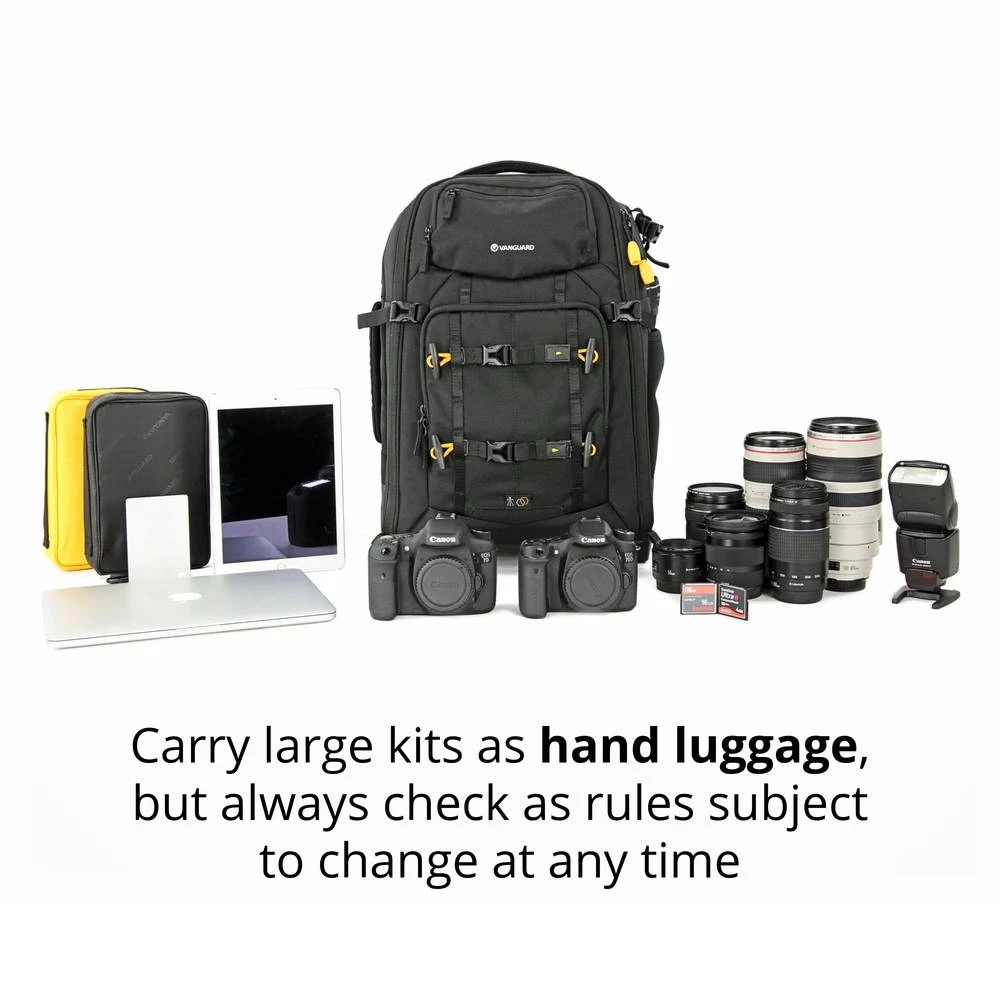 Upholding our high standards of quality, materials and protection ALTA FLY 49T, though super compact still packs a considerable amount of professional gear: 1-2 Pro DSLRs, 5-7 lenses (up to 300mm f/2.8), 2 flash units and a multitude of accessories. Other essentials are also addressed and protected in dedicated internal and external pockets, including a 14” laptop compartment (with dimensions of 290x25x420mm), a tablet sleeve and two bonus pouches that fit neatly into both side panels and are ideal for safely securing travel documents, wallet and other valuables, as they can be removed easily and used separately.
