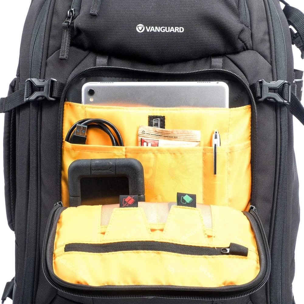 Traveling, or arrived on location and working, the ALTA FLY 55T’s well-padded internal compartment opens fully for ease of use and the multitude of versatile dividers can be adjusted to fit 2 CSCs (Compact System Cameras) with up to 6 lenses, or 2 DSLRs with 4-5 lenses (up to 300mm f/4), a flash unit and multiple accessories.