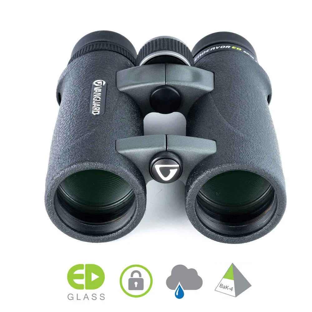 The Vanguard Endeavor ED 8×42 binoculars are an excellent pair of mid-range birding binoculars for outdoor enthusiasts. Offering impressive optics, with a combination of ED glass and special coatings for a crystal-clear field of view. Image reproduction features bright colours and a significant reduction of chromatic aberration – these Vanguard 8×42 binoculars are brilliant in a variety of light conditions. Along with the ergonomic and lightweight design that allows for hours of comfortable handling. The Vanguard 8×42 binoculars are waterproof and fog proof for consistent operation so the user can appreciate the beauty of nature effortlessly.