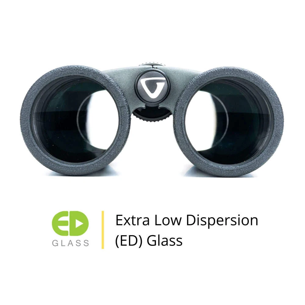 Featuring ED Glass and BAK-4 prisms that collectively work to create a crystal-clear image with bright colours. The ED (extra-low dispersion) glass significantly reduces chromatic aberration to enhance overall contrast and resolution. The Vanguard 8×42 binoculars have Anti-Reflection Coating on all air-to-surface lenses which minimises light reflection. As well as multi-coatings on the lenses to ensure excellent light transmission and image recognition.