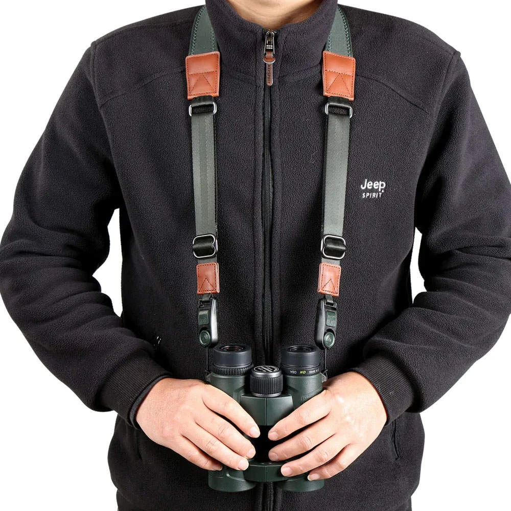 The Vanguard VEO Optic Guard NS Neck Strap, available in black (BK), brown (BR) or green (GR). These are neoprene straps with a non-slip inner lining that are great for everyday use, and can be adjusted in length from 84mm to 1090mm for maximum comfort. Each Vanguard VEO Optic Guard NS Neck Strap includes real leather finishing, with enhanced stitching for maximum security. Each strap comes with four cinch clips so you can set up more than one device to use the strap with, such as your binoculars and your camera.