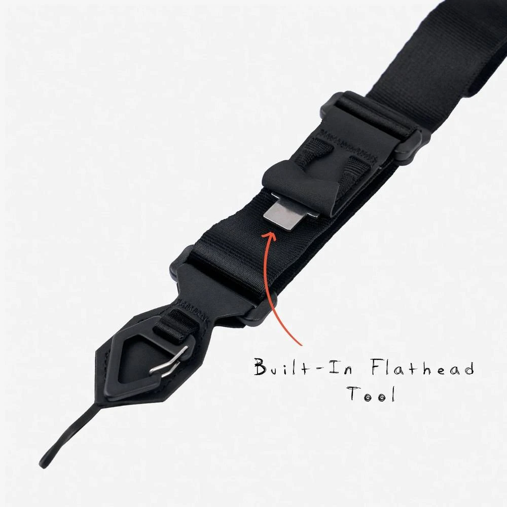 There’s nothing worse than not having the right tool for the job. Luckily for you, we designed the Sling Strap with a built-in flat head tool so you can always attach or remove the camera base plate when needed.